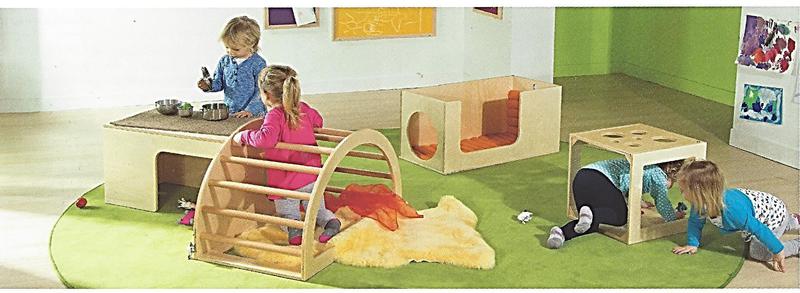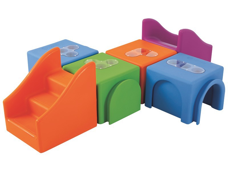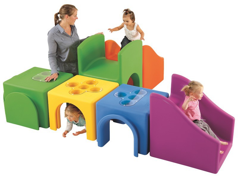 Mit unseren robusten Mini-Explorer-Einzelelementen für Kindergarten und Kinderkrippe können Sie einen Kriechtunnel mit oder ohne Kreuzung, eine Rutsche, Höhle, ja sogar einen sicheren Spielplatz ohne Werkzeug ganz leicht selber bauen, immer wieder verändern und nahezu grenzenlos erweitern. Keine scharfen Ecken oder Kanten gefährden die Kinder, die Elemente sind pflegeleicht zu reinigen, langlebig und für den Innen- und Außenbereich geeignet.