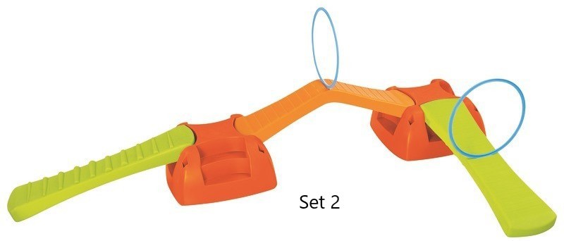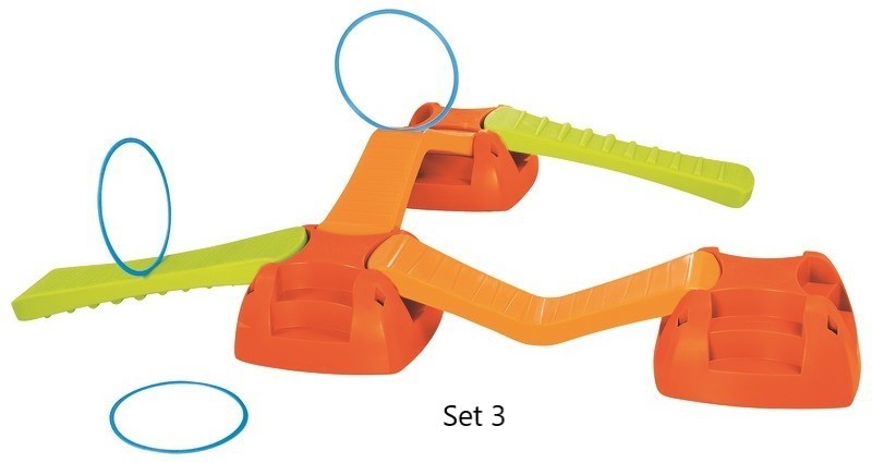 Set 3: 2 flache Latten, 2 Latten Neigung, 3 Felsen, 3 Ringe Diameter 50 cm. Bodenmaße : 350 cm - Breite: 240 cm: € 399,00 / € 478,80